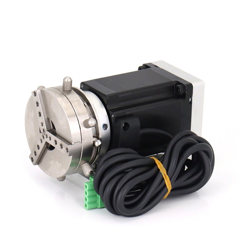 В процессе обработки заготовок на лазерных или фрезерных станках с ЧПУ возникает необходимость поворота деталей на определенные углы для выполнения соответствующих манипуляций. Для этого оборудование комплектуется специальными механизмами, позволяющими заменить токарные агрегаты. Они называются поворотными устройствами для лазерных станков, которые состоят из зажима цилиндрической формы, фиксируемого на станине, и упора. За перемещение оси отвечает дополнительный элемент — шаговый двигатель. В нашей компании LaserMarker можно купить поворотный механизм для лазерного станка по самым доступным ценам в Москве и России.